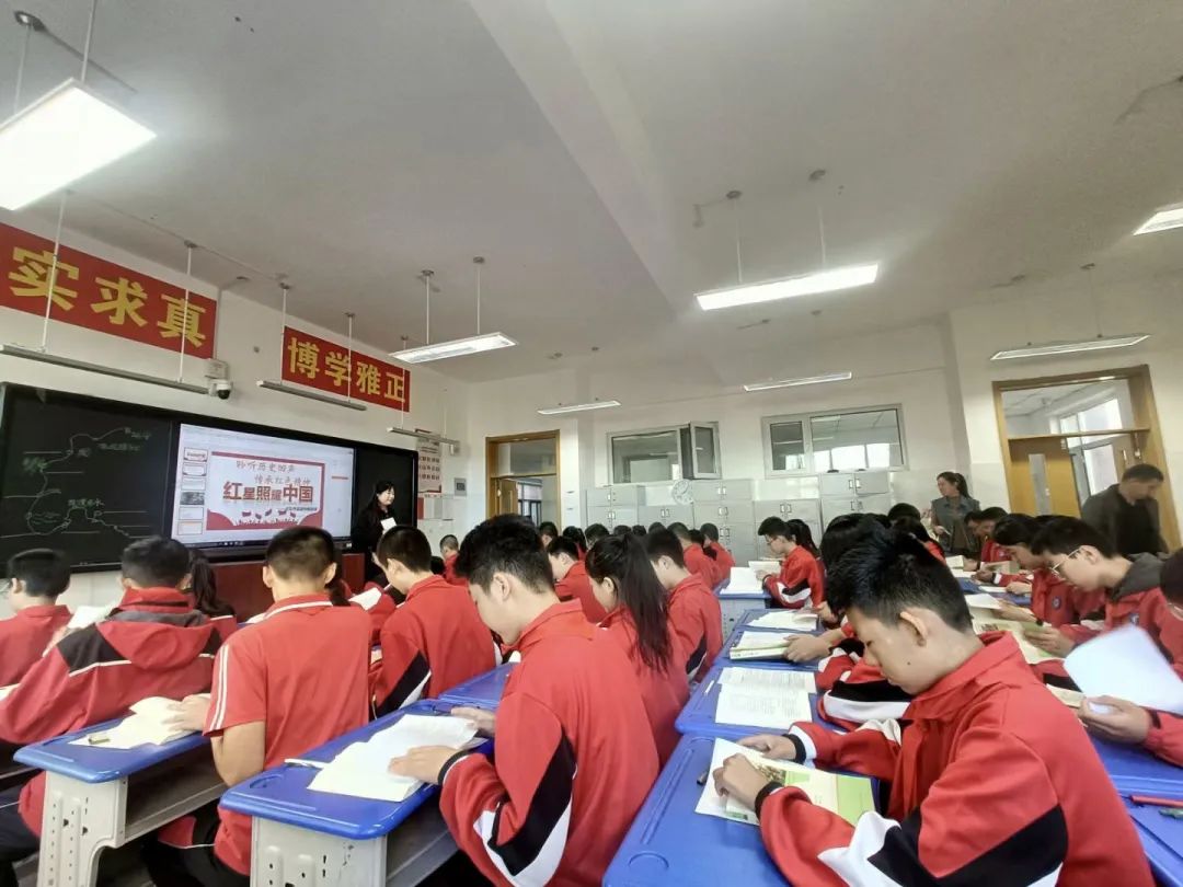 本次见习的内容是现场教学观摩,见习生共分为四组,分时段分批次前往教室,体验真实的课堂教学。授课老师的教学设计丰富多样,教学理念、方法和侧重点各具特色,精彩纷呈。在课堂上,授课老师充分挖掘教材内容,与时代精神相结合,加深学生对课文的理解;娴熟地利用多媒体手段辅助教学,利用知识填空等形式调动学生的学习积极性;精心进行教学活动设计,分任务进行教学,发挥学生主动性;合理掌握教学时间,把控好教学节奏;巧用板书设计,师生共同填答,加深记忆和理解。给参加观摩的同学留下了深刻的印象。在听课过程中,同学们认真学习一线教师对教材内容的解读、重难点的处理、课堂节奏的掌握、教学方法的选择、核心素养的落实等技能,收获满满。
