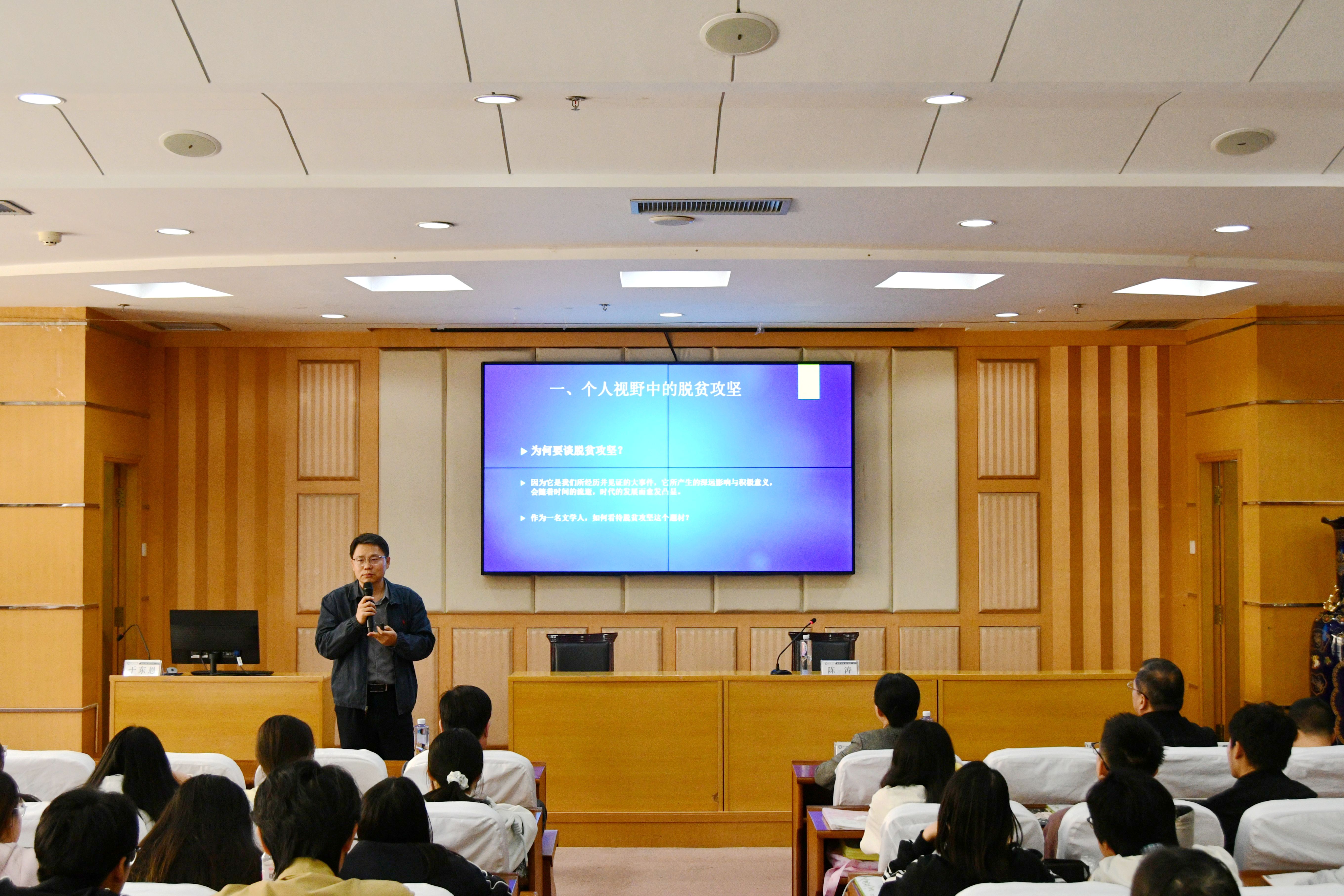 讲座中,陈涛博士结合自身在甘南藏族自治州临潭县的驻村任职经历,从脱贫攻坚的时代实践切入,深情讲述了基层一线的奋斗故事与人生感悟。他以亲身经历阐释文学与时代、文学与青年的紧密联系,指出新时代大学生应在阅读与创作中明初心、担使命,把个人理想融入国家发展与民族复兴大局。他鼓励同学们走进生活、扎根实践,在真实的经历中汲取创作养分,在艰苦的磨砺中锤炼意志品格,以文学之笔书写青春担当,以奋进之姿践行时代使命。